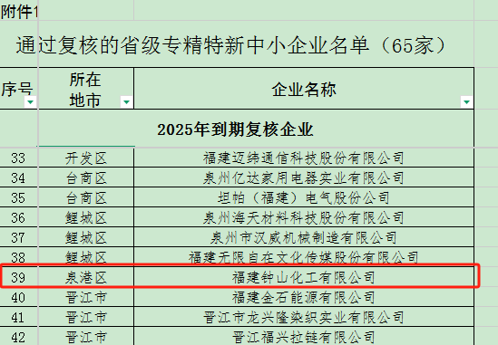 福建鐘化順利通過2025年省級“專精特新”企業(yè)復審